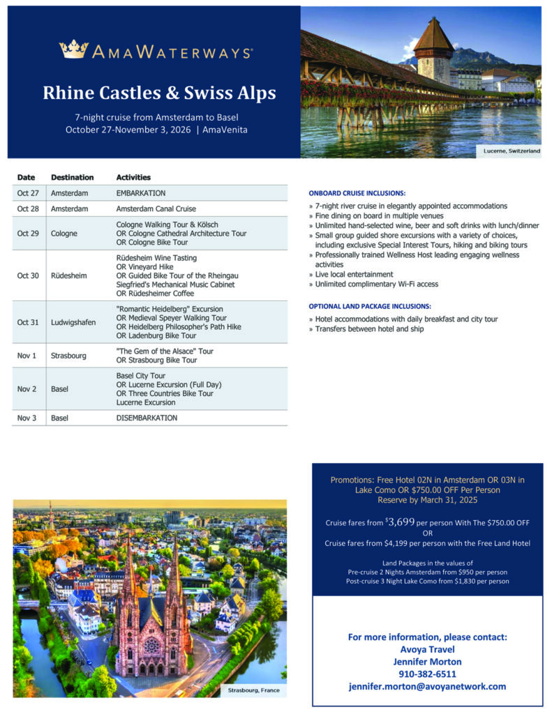 Cruise through the heart of Europe with castles, cobblestone towns, and crisp wines at every bend. From Germany’s fairytale villages to the majestic Swiss Alps, this one is pure magic.