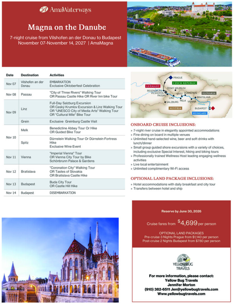 Indulge your passion for awe-inspiring architecture, timeless music, breathtaking landscapes and culinary delights on this beautifully curated itinerary specifically designed for AmaMagna. Apricot brandy and chocolate tasting in Dürnstein and an exclusive wine festival in Spitz are only a few of the epicurean experiences you’ll indulge in. Vienna, home to a treasure trove of Baroque splendors, including its grand Schönbrunn Palace, gives you a glimpse into bygone grandeur; while Budapest and Bratislava offer a vibrant mix of east and west. With plenty of daytime scenic sailing, you’ll be able to enjoy the extraordinary AmaMagna to its fullest—from al fresco dining to spinning with a view. See Austria, Germany, Hungary, Slovakia